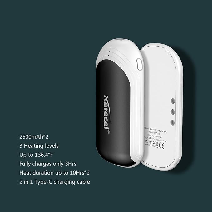 Karecel Hand Warmers Rechargeable 2 Pack, 5000mAh Hot Electric 2 in 1 Hand Warmer Portable Pocket Heater Reusable Handwarmers, Best Electronic Gifts for Men Women Kids, Hunting, Golf, Camping