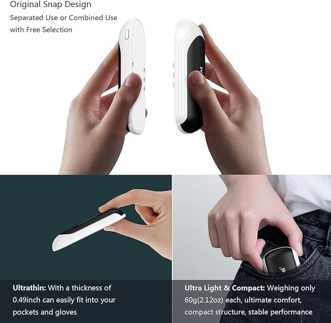 - 【Super-thin and Ultralight & Ergonomic Design】After tireless efforts in design and production, whether combined or separated use, do not affect it's perfect grip feel. With a thickness of 1.25cm/0.49", weighing only 60g(2.12oz) each, KS-19 can easily fit into your pockets, ski gloves, or bag, ensuring you can take them wherever you go.