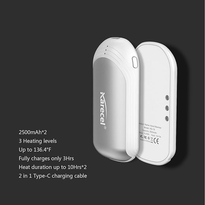 - 【2-in-1 Hand Warmers & What's in The Box】This handwarmers are also fits pockets of jacket or gloves perfectly, you can share this 2in1 handwarmer with your family or friend. A quality gift packaging including 2 in 1 rechargeable hand warmers, 2 in 1 Type-C charging cable, User manual and 24/7 customer support service.