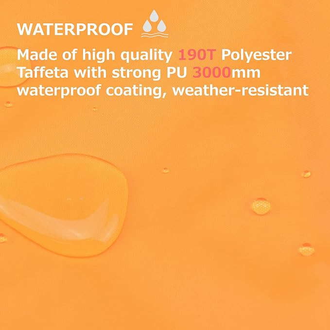 - 🏕 WATERPROOF & UV PROTECTION: Made of 190T ripstop polyester taffeta fabric, the waterproof coefficient is up to 3000 mm, which protects you and your belongings from moisture and provides lasting protection. The sunshade can effectively block ultraviolet rays and protect skin from sunlight damage