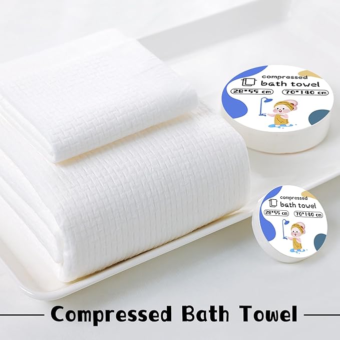 - 🚿【Easy to Use】Just add water, and the compressed towel tablets will expand, you will get a soft bath towel.