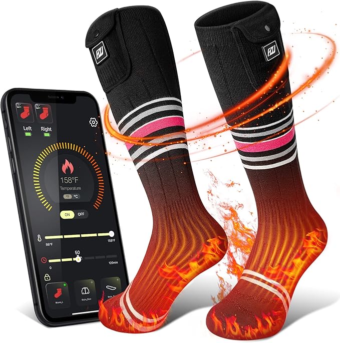 Heated Socks for Women Men Rechargeable Washable, Battery Electric Heated Socks Foot Warmers with APP Control for Skiing Hunting Riding Camping Fishing Hiking Outdoor Work