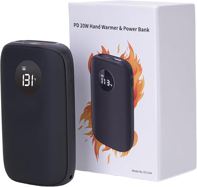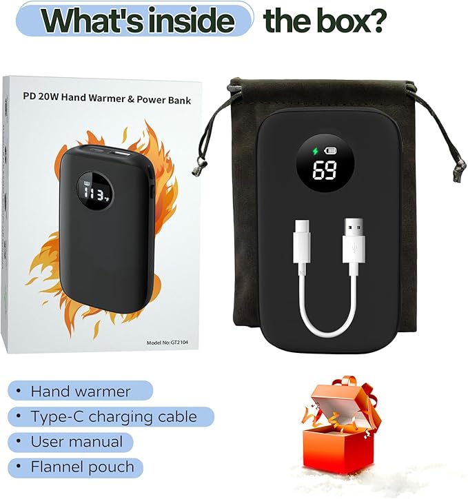 Hand Warmers Rechargeable,9600mAh Portable Pocket Heater Power Bank,10 Hours of Warmth,Dual-Sided Heating,Reusable,20W Fast Charging