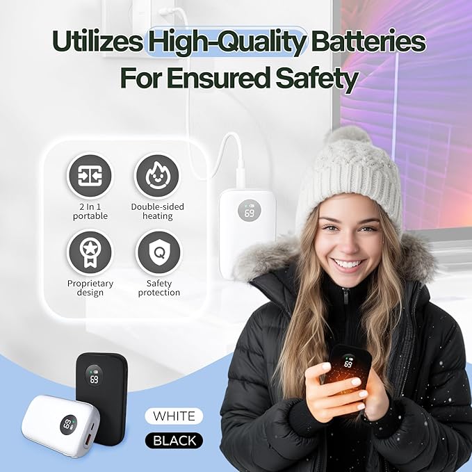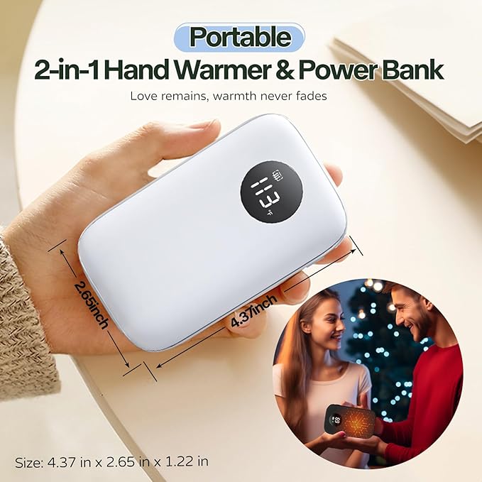 - 【Dual Practicality】 This product combines the functions of a hand warmer and a power bank,featuring dual-sided heating and 3 adjustable heat settings (113°F, 131°F, 149°F) catering to meet your needs needs for staying warm during cold seasons.