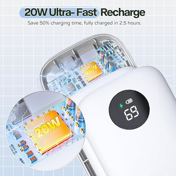 - 【Fast Charging Smart Display】supporting bidirectional 20W fast charging,it offers efficient and speedy charging for mobile devices,Featuring a digital display screen,it provides clear visibility of battery levels,heating status,and temperature values.