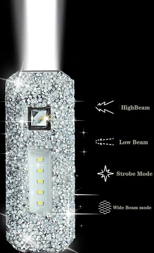 Bling Flashlight Rhinestone Sparkly Glitter Flash Light for Woman Diamond Decor Cute Pink Flashlight Camping Essentials