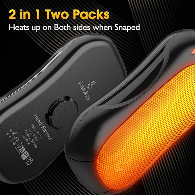 - [2-in-1 Portable Hand Warmer] FANDLISS rechargeable hand warmer with ergonomic split snap swivel design, small and portable pocket hand warmer can be put into any pocket or bag, you can heat your hands at the same time in the cold winter, or combined into one to meet the double-sided heating function, to meet your different needs in different situations!
