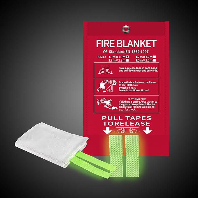 - 🔥Convenient Night Visibility: The emergency fire blankets for home features a glow-in-the-dark strip that absorbs light during the day and emits a soft glow at night, making it easily locatable in dark environments. As an emergency survival fire cover, every family needs it, but we hope you will never use it. Highly recommend keeping one nearby kitchen, fireplace, camping, office, grill, etc.