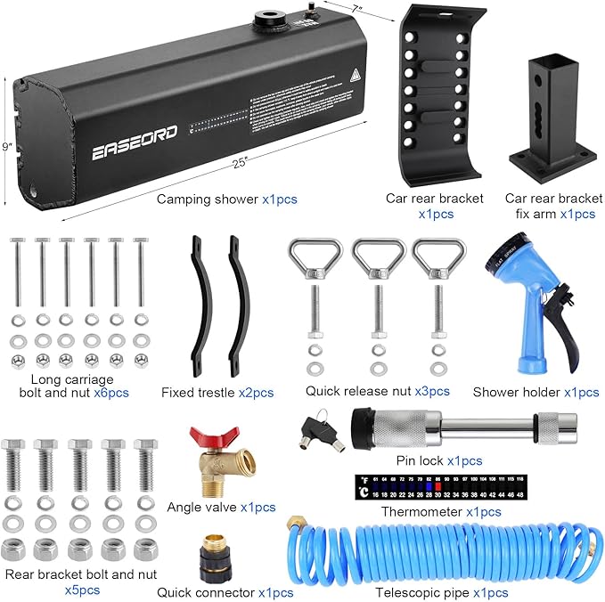 - Built to Last:This EASEORD road shower is made of high-strength aluminum and magnesium alloys,high quality hardware,which is strong and durable, It is very suitable for the use of complex field environment