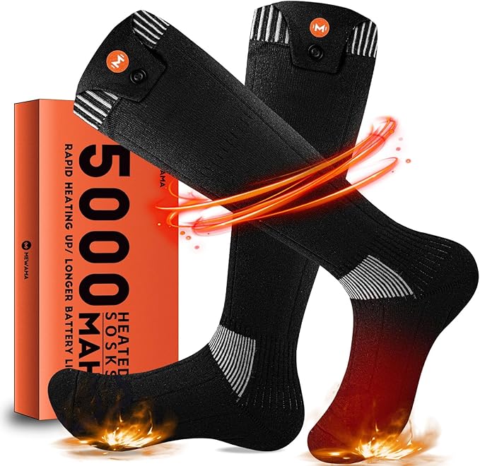 Heated Socks for Men Women, MewaMaA Battery Heated Socks Rechargeable Washable, Electric Socks Foot Warmer for Hiking Biking Camping Skiing Hunting Outdoor Work, Heating Socks Warm Socks