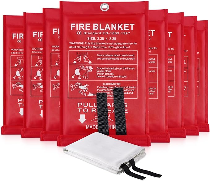 - 🔥【Multi-purpose】: Fire blanket kitchen has a variety of uses, when the object fire you can quickly cover the blanket to stop the spread of fire, you can also cover it on your body to prevent injury, fire blanket for car cover, camping kitchen, car camping, camping grill, car shelter, campfire grill.Of course, the fire blanket can only put out small fires, such as a large fire, please you promptly call the police.
