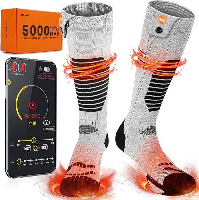 Heated Socks for Men Women, MewaMaA APP Control Battery Heated Socks Rechargeable Washable, Electric Socks Foot Warmer for Hiking Biking Camping Skiing Hunting Outdoor Work, Heating Socks Warm Socks