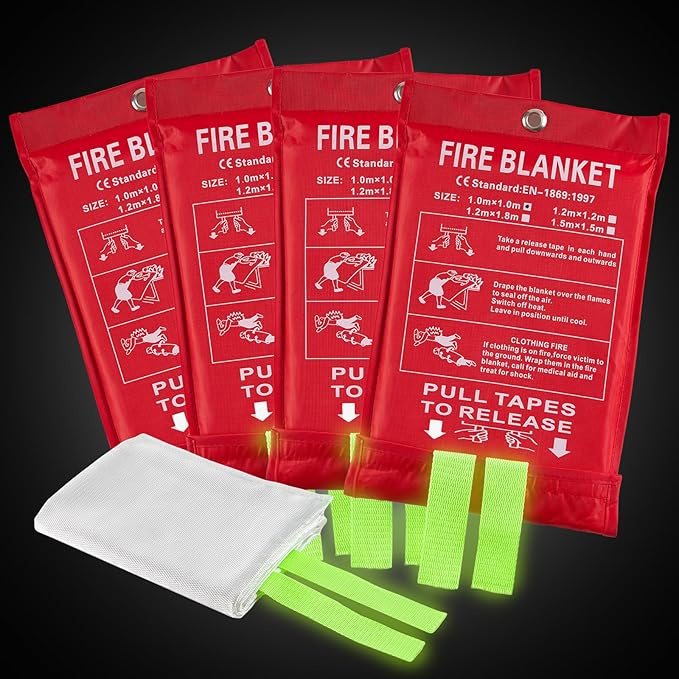 Emergency Fire Blanket for Home and Kitchen, Fire Extinguishers for Home, Fiberglass Fire Suppression Blanket with Luminous Strip for Fireplace, Car, Camping, Picnic, Grill(4, 40''x40'')