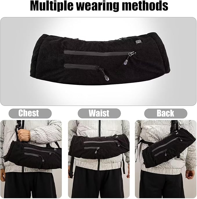 - 【With Four Storage Pockets & Adjustable / Detachable Waist Belt】Our hand warmer pouch features four practical zipper storage pockets which can be used to store phone, wallet, glasses, keys, tissues etc. keeps your valuables extra secure. In the middle is a battery storage pocket to store power bank.The reusable hand warmer has a long adjustable shoulder strap design that can be hung around the neck, carried on the back, or worn around the waist,Elastic design of the cuffs, there will be no cold