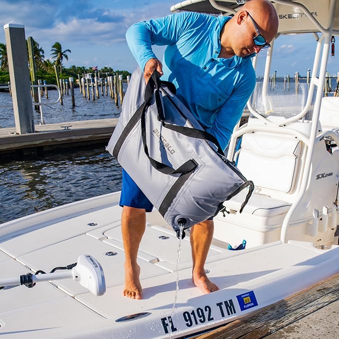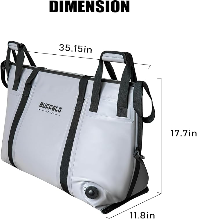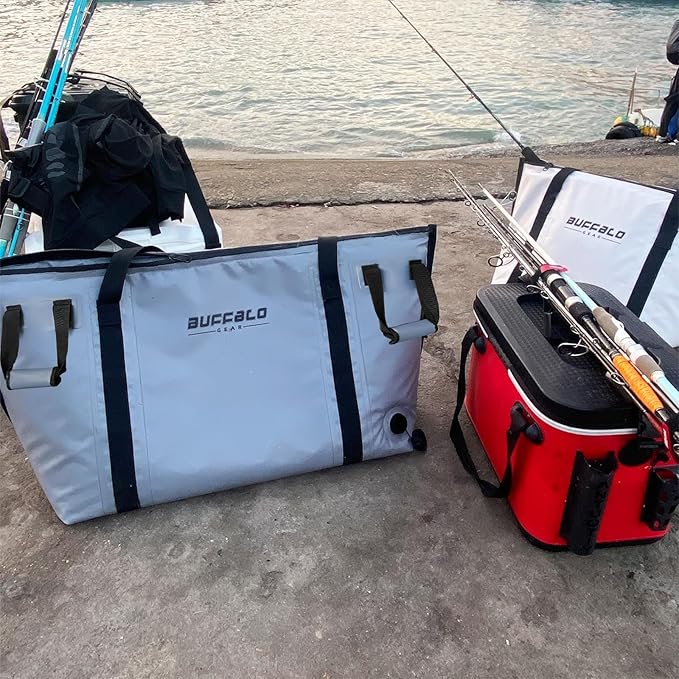 Buffalo Gear Insulated Fish Cooler - 27.5QT 58QT Waterproof Flat Bottom Bag, Leakproof and Fishing Kill Bag