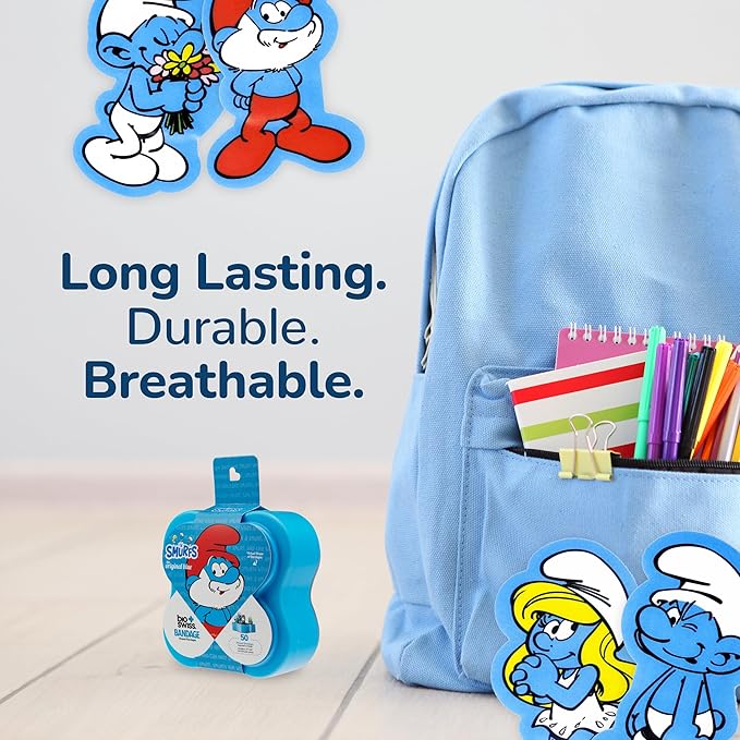 - EASY TO CARRY AND USE: These cute and colorful Smurfs children's bandages are easy to take with you for travel, and easy to store in a home first aid kit; these healing bandages are perfect for school, summer camp, camping trips, weekend getaways and more
