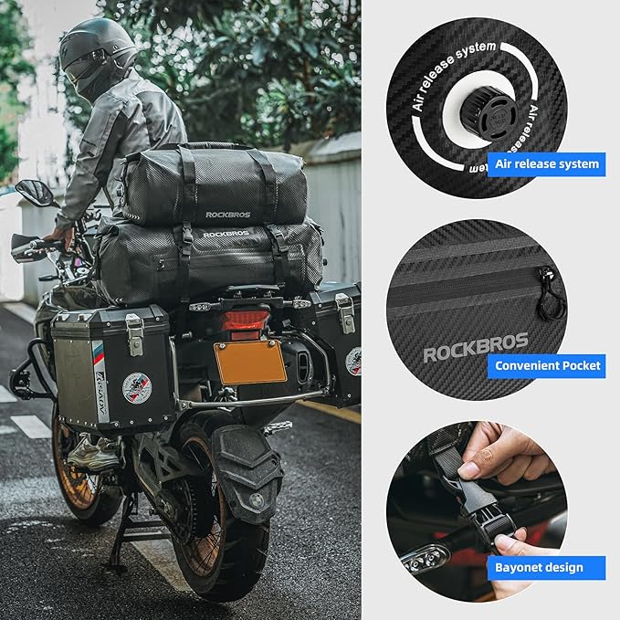 ROCKBROS Waterproof Duffel Bag 20-60L Motorcycle Travel Dry Duffel Bag for Motorcycling Boating Kayaking Camping Fishing Outdoor Adventure for Men Women