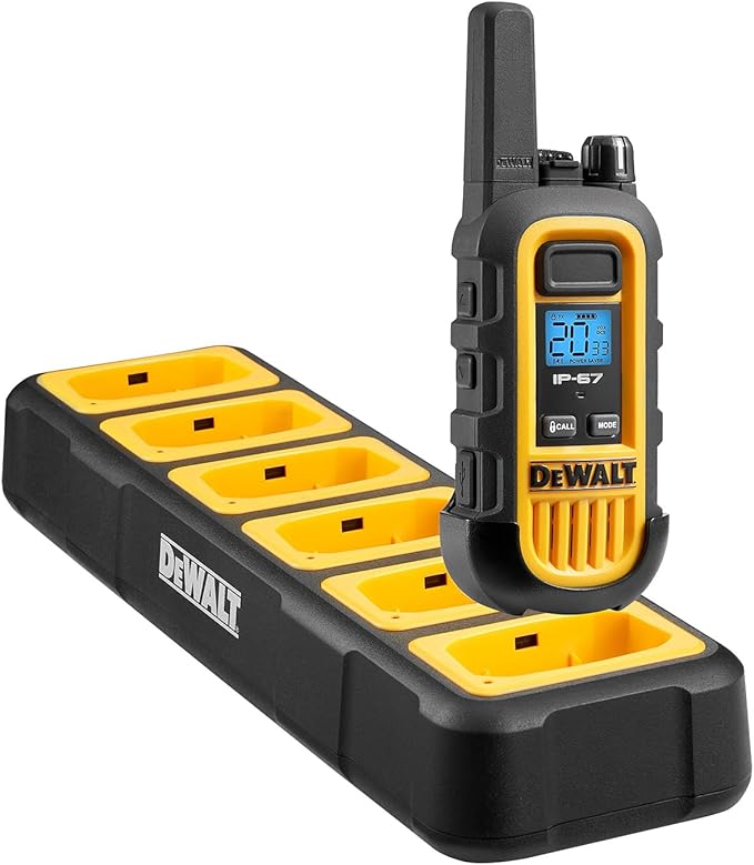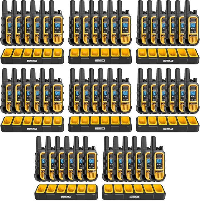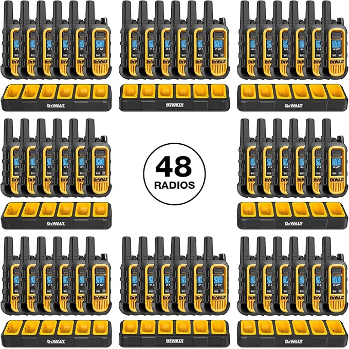 DEWALT DXFRS300 1 Watt Heavy Duty Walkie Talkies - Waterproof, Shock Resistant, Long Range & Rechargeable Two-Way Radio with VOX (48 Pack w/ 8X Gang Chargers) (8DXFRS300-BCH6)