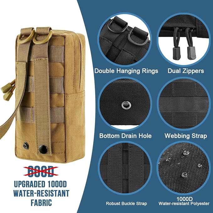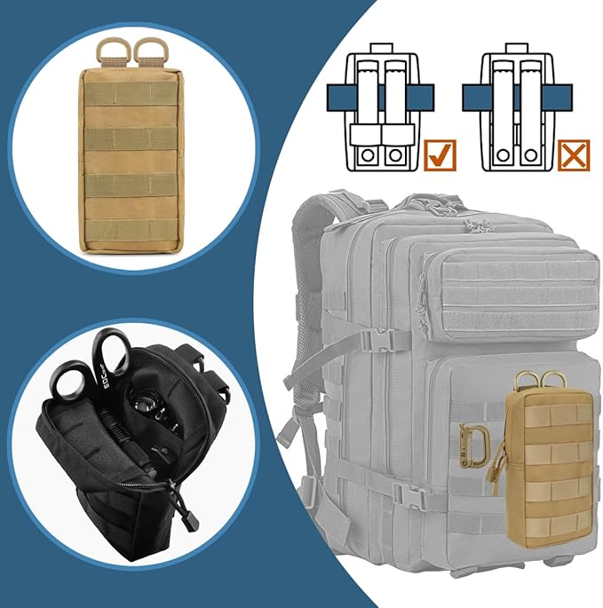 - MULTI-PURPOSE: MUCHER molle bags are suitable for indoor and outdoor use, including camping, hiking, hunting, sporting events, school supplies, tools, etc. It is suitable for storing mobile phones, keychain, GPS device, digital cameras, medical supplies, small tools, and anything else you need, easily accessible and reinforced molle attachment points.