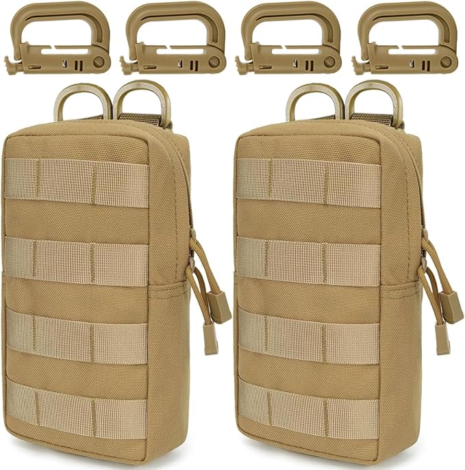 MUCHER 2 Pack Molle Pouches Tactical Pouches EDC Pouch Organizer Molle Bag Utility Pouch with 4 Carabiners for Outdoor Hiking Hunting Camping Training