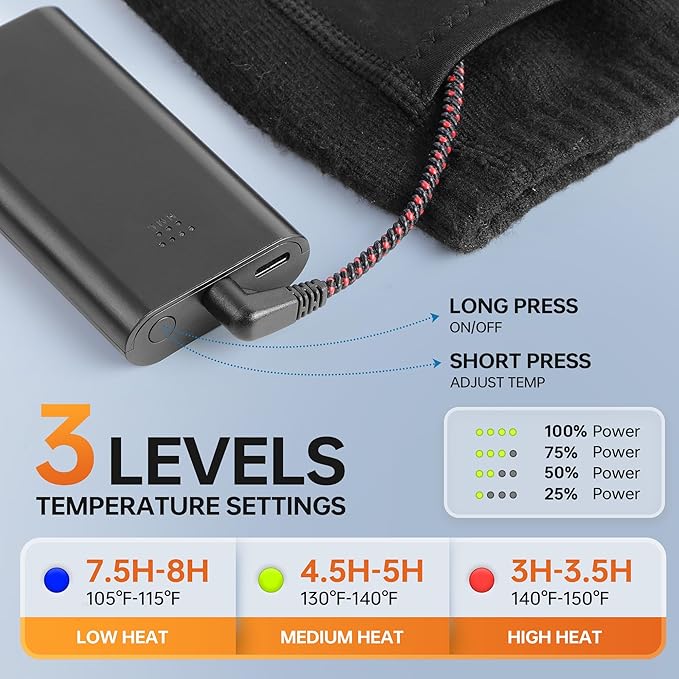 - Ideal for Extreme Cold and Winter Sports - VANRORA rechargeable heating socks cater to most people's temperature needs, making them ideal for outdoor activities like snowmobiling, skiing, fishing, hiking, camping even hunting in cold weather. They'll keep you comfortably warm all day long. They are also perfect for the elderly and anyone who despises cold feet. A pair of heat socks make an fantastic winter gift for your loved ones to deliver a warmth.