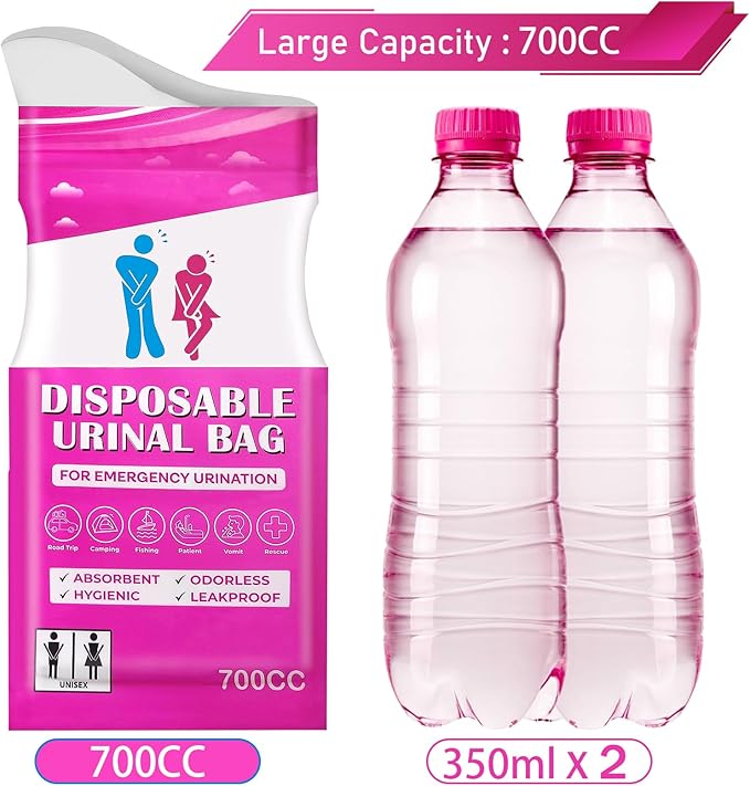 - 【Strong sealing and Large-capacity】Made of durable, high-quality PE, which is strong, flexible, and puncture-resistant. Lightweight and tightly sealed, you can carry many of these male urinals/female urinal with you with no problem. 700ml large capacity urine bag, one size fits for all of people, not only for male/female, but also for patient people and pregnant female during travel or traffic jams in emergency situations.