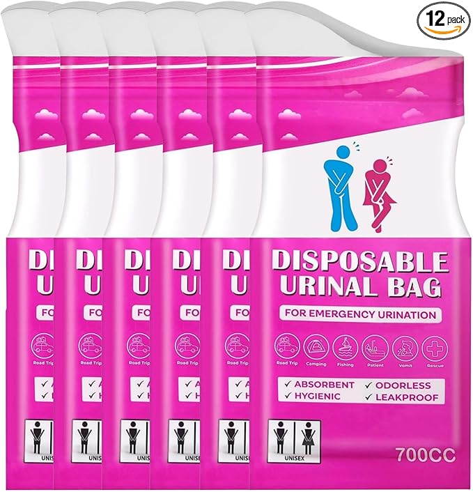 Disposable Urinal Bag, Portable Urine Bag, Portable toilet for adults, Unisex Urinal Bag for Men Women Children, Emergency pee/wee bags, vomit bags for Car, Traffic Jams, Camping, Travel (Fuchsia, 12)