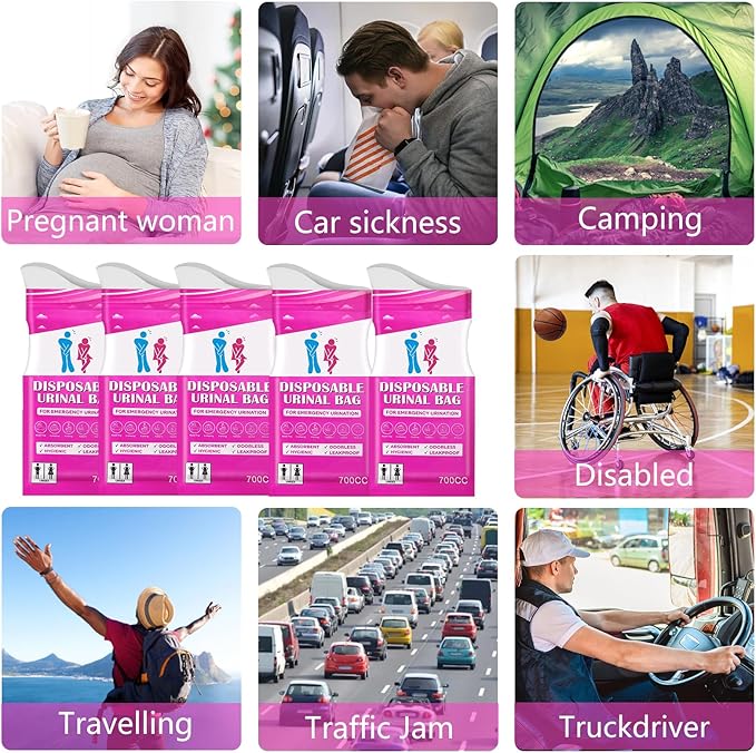 - 【Unisex urine bag Design】Our disposable urinal bags are suitable for man, woman, adults, elderly, toddler, kids, Children, pregnant women or patients in need to relieve emergency urination. Don't worry about not finding the toilet with it.