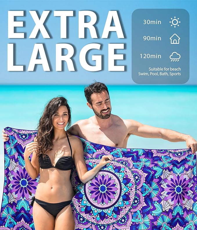 - ☀️[ Microfiber Lightweight ] High quality microfiber that absorbs water much faster than ordinary fabric! Eco-friendly, no faded and no smell. You can easily take it portable to avoid wet and cold on the beach. Multiple size options perfect for all adults and children.