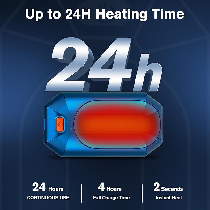 - π§γ2s Fast Heating Hand WarmerγThe hand warmer can heat up very quickly, with the fastest time reaching 3 seconds. The hand warmer will make your hands feel warm quickly in cold winter. The hand warmer can adjust the temperature independently, and each separate half provides 3levels of adjustable temperature (40Β°C/48Β°C/55Β°C)to fully meet your different needs. The hand warmer provides heat for a long time, up to 15 hours, so you don't have to worry about your hands getting cold.