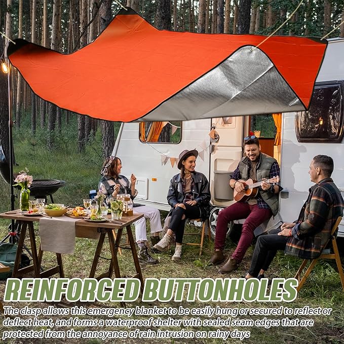 - Reinforced Drawstring Buttonholes: the clasp allows this emergency blanket to be easily hung or secured to reflect or deflect heat, and forms a waterproof shelter with sealed seam edges that are protected from the annoyance of rain intrusion on rainy days