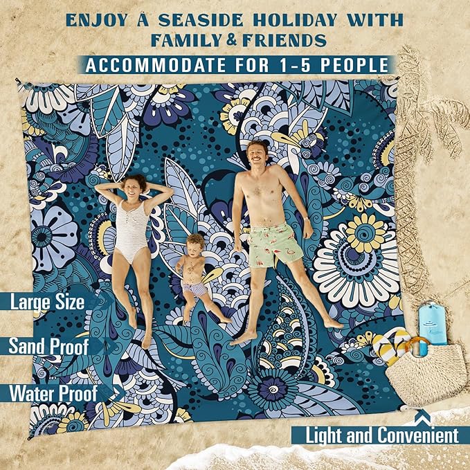 - 🌴BEACH BLANKET SANDPROOF WATERPROOF:78''×81'' fits 1-5 adults.Made with ripstop 210T polyester.The sand will fall down when you shake the blanket.The little water left behind will dry out in minutes.