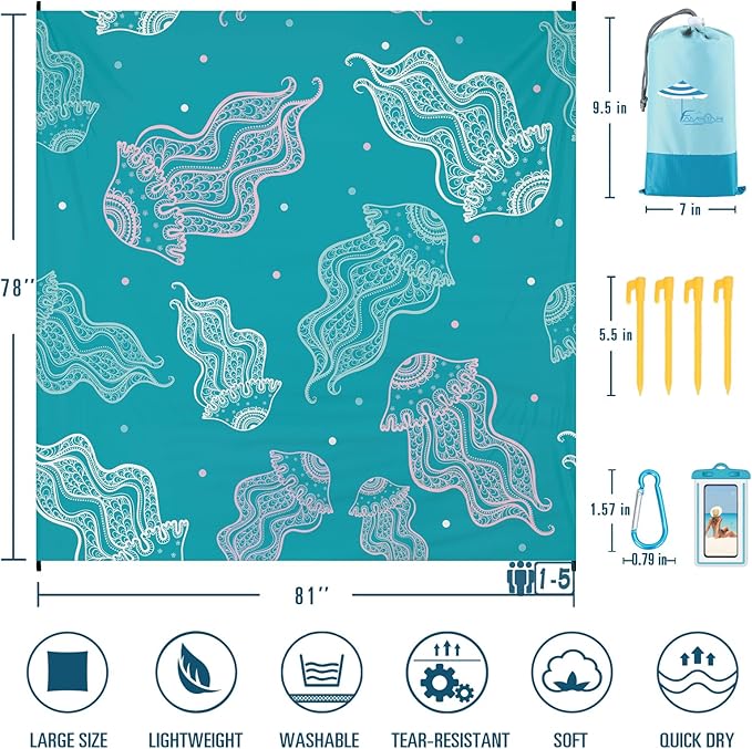 - 🌴BEACH BLANKET SANDPROOF WATERPROOF:78''×81'' fits 1-5 adults.Made with ripstop 210T polyester.The sand will fall down when you shake the blanket.The little water left behind will dry out in minutes.