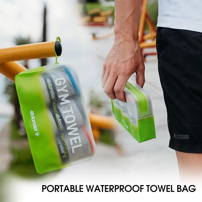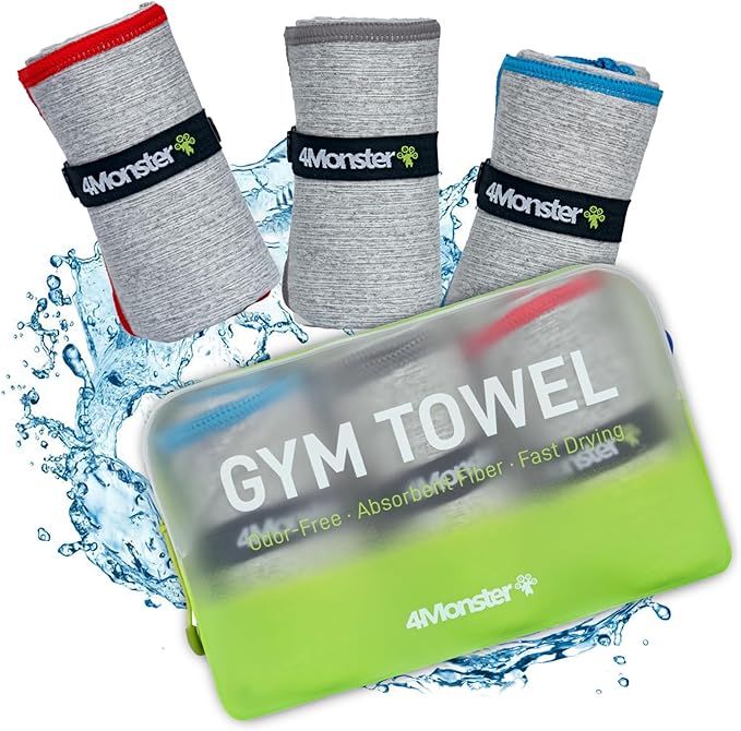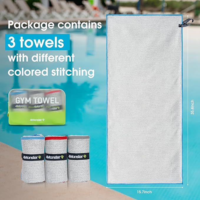 4Monster Microfiber Gym Towel & Wet Towel Bag Travel Set,Quick Dry Camping Towel Lightwight Travel Towel,Ultra Soft Absorbent Workout Towel Gear for Body Sweat, Beach, Pool, Shower (Blue&Gray&Red, 3)