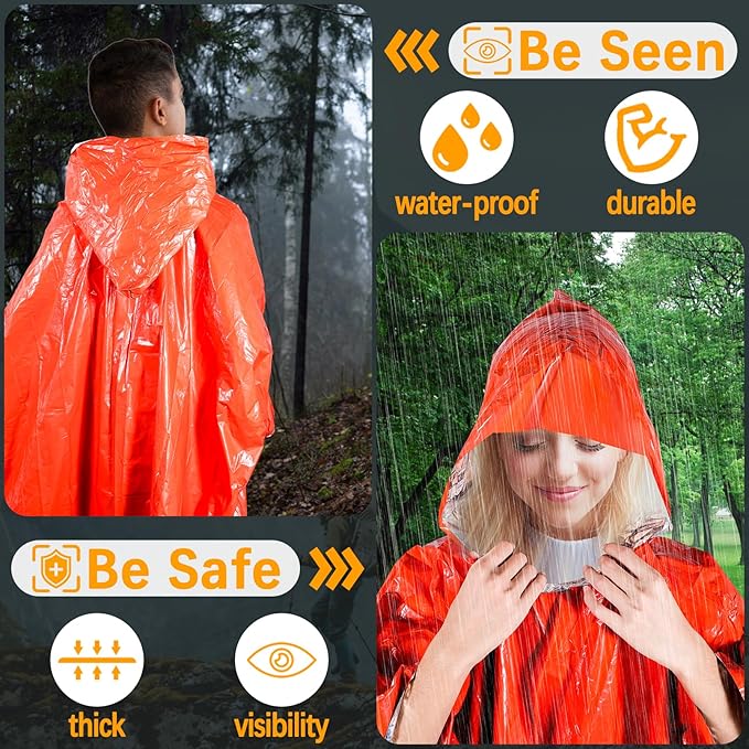 - Multipurpose: The emergency rain poncho is suitable for use in emergencies that are generally affected by severe weather, and can be used as a backpack cover, bivouac bag, emergency signal, rain poncho, dust cover, arm sleeve, sleeping bag liner, sunshade, windshield, etc.