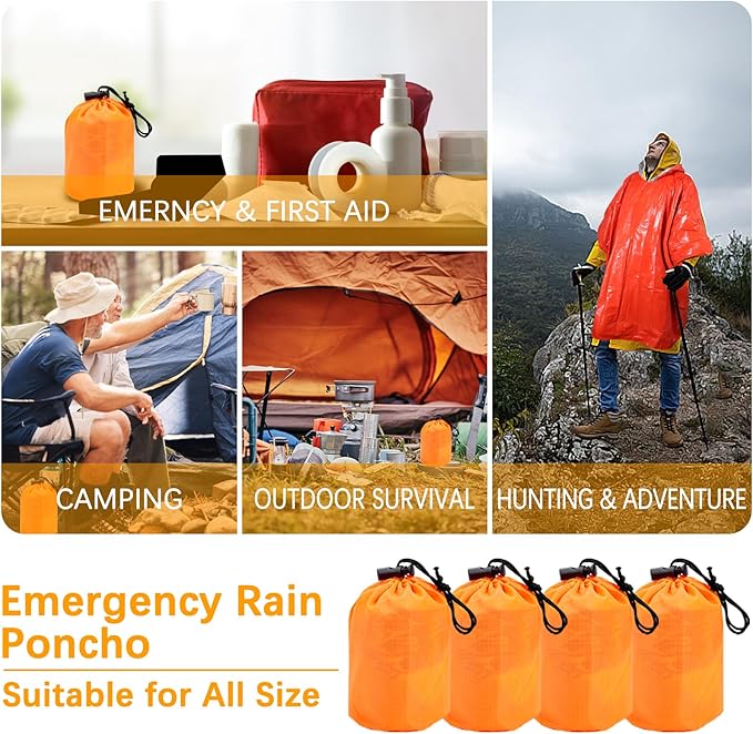 - Emergency Rain Poncho: 4 pack orange emergency poncho are include to not only keep you out of the rain during your regular outings, but also to keep you dry and protected, ensuring your body is comfortable and warm when you experience unexpected bad weather.