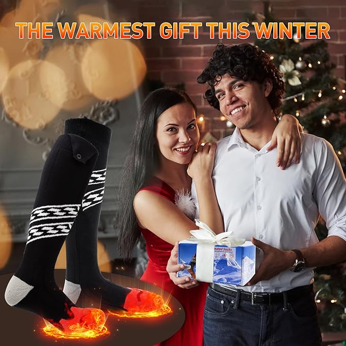 - 【Warmest Gift in Winter】Rechargeable heated socks are suitable for all kinds of outdoor activities in winter, such as camping, hunting, hiking, skiing, skating, fishing, snowboarding, snowmobiles, motorcycles, bicycling, outdoor work and so on. Electric heated socks bring warmth to your lovers, parents and friends, they are the best warm gifts for Thanksgiving, Christmas and Valentine's Day, winter socks can also be used as Christmas stocking stuffers!