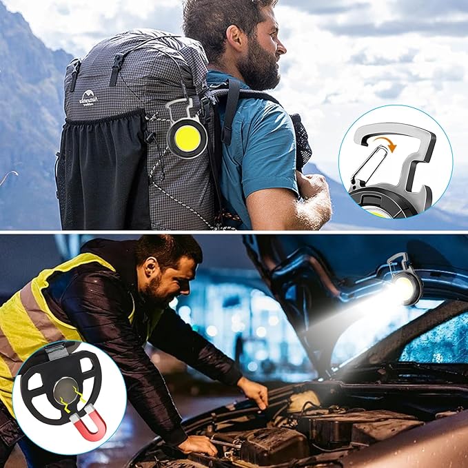 - Rechargeable Flashlight: This pocket flashlight provides 1000 lumens illumination at max, making it perfect for various activities such as camping, fishing, and hiking. The large cob technical led allows it to be used as a small work light and emergency light.