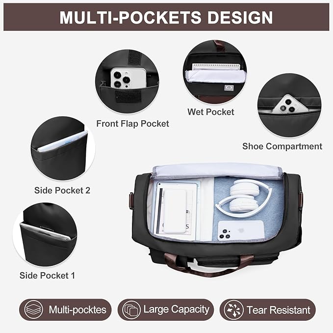• 【Multifunctional Tote Bag】Our gym bag can be used for various indoor and outdoor activities. It can be used as a dry and wet separate bag, gym bag, dance bag, luggage bag, beach bag, cheer bag, mommy bag, hospital bag, nurse bags, overnight bag, weekender bag, which is the perfect partner for short-distance, travel and air travel.