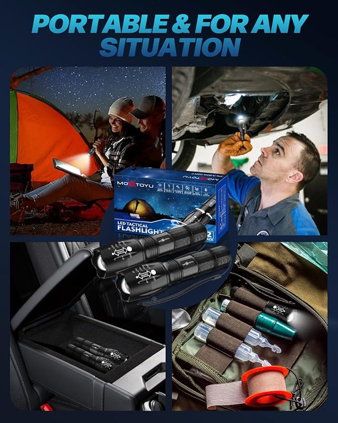 - Battery and Case Included : Unlike other flashlights, we provide 6 AAA batteries for immediate use in emergencies upon receiving these flashlights. Additionally, we include a battery case for containing AAA batteries. This two-in-one design gives you more options and convenience.