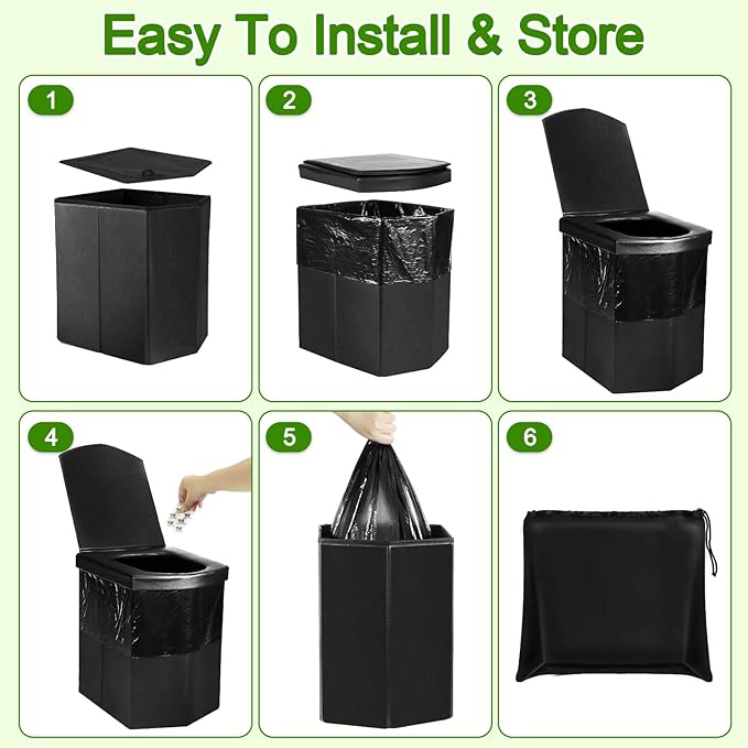 - Easy to use and storage:Our adult portable potty,simple structure, it can set up and fold in seconds, with the provided two rolls garbage bag (also compatible with any 6-8 gallon garbage bag), when nature is calling, you and your family will get a good take care, no longer have to teach kids to squat in holes and bury poo