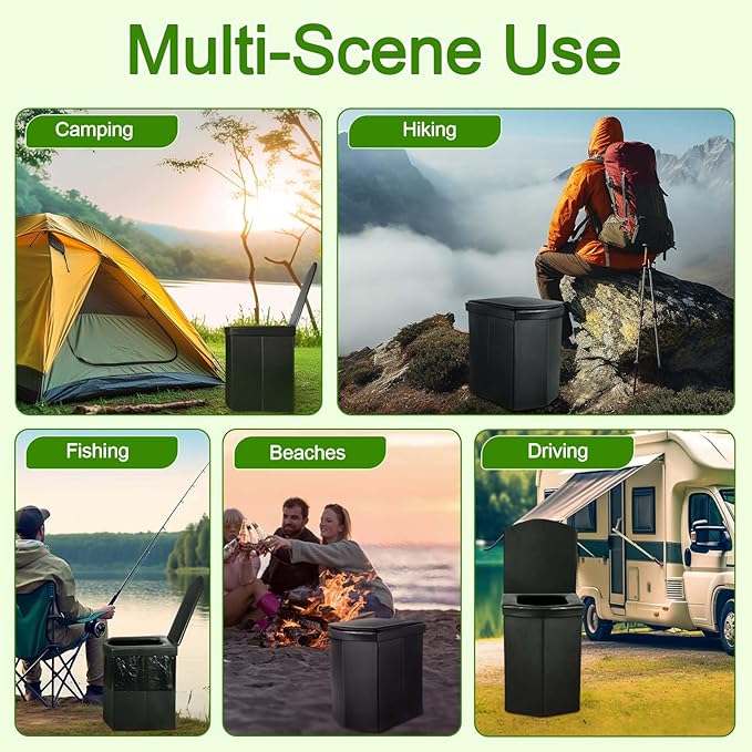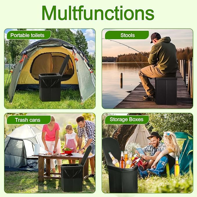 - Multifunctional:Our camping Toilet can be used for outdoor, truck, hiking, long travel, boating and camping, freely switch various usage modes, as storage box, trash can, bar bucket, small dining table, retractable stool and indoor toilet