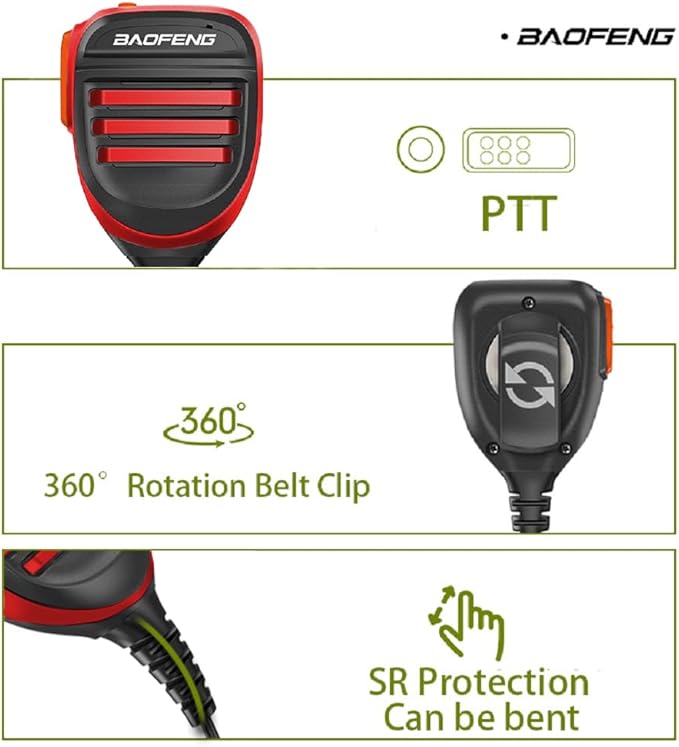 BAOFENG BF-F8HP Microphone Speaker Handheld Mic Waterproof Upgrade of Original BF Mic for GMRS Ham Radio 2Pin K Mic Compatible with UV-K5 UV-82 UV-S9 Plus UV-17R P15UV