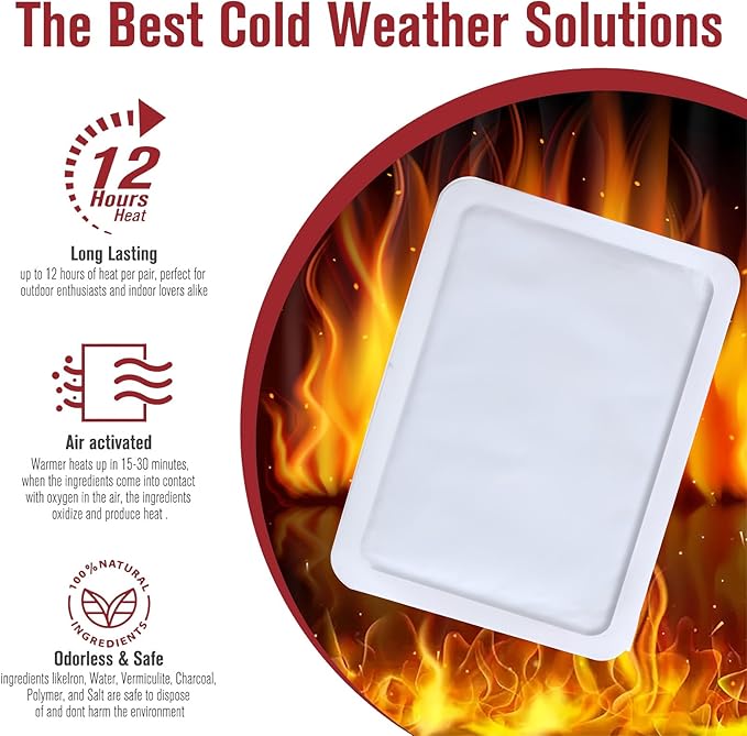 - DISPOSABLE HEATED HAND WARMERS, EASY TO USE: Designed for single use, our hand warmers with air natural heating packs are a hassle-free addition to your outdoor gear. Use them once to warm up and then dispose of them responsibly. These disposable hand warmers are a must have for camping gear and winter camping.