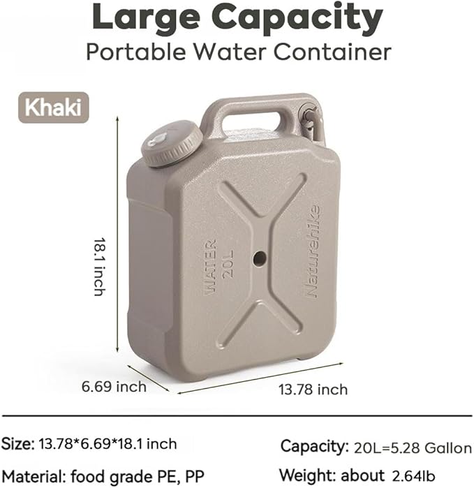 Naturehike Camping Water Container, 3.17/5.28 Gallon Portable Water Container with Spigot, Water Tank, Portable Emergency Water Storage Camp Water Jug for Camping, Hiking