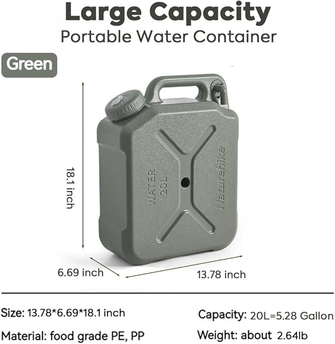 Naturehike Camping Water Container, 3.17/5.28 Gallon Portable Water Container with Spigot, Water Tank, Portable Emergency Water Storage Camp Water Jug for Camping, Hiking