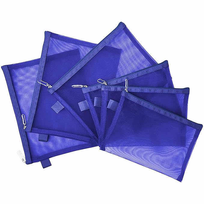 - Set of 6 toiletry bags provide attractive and lightweight solution to many storage needs. This mesh bag is perfect for organizing small things to keep them handy. It can be used as cosmetic bag, pencil case, coin purse, make up bag travel kit, travel organizer bag, or to keep notes, check, bill and so on