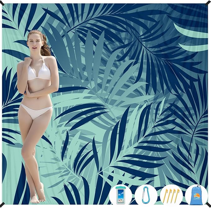 • 🌴BEACH BLANKET WATERPROOF SANDPROOF:78''×81'' size beach blanket is made of parachute fabric,odorless,can be used by 1-7 adults simultaneously.Rip-stop 210T polyester, lightweight and compact after folding.Easy to carry and use.