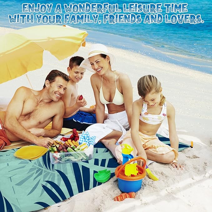 • 🌊BIG BEACH BLANKET:Durable and fast drying,can also be used as a canopy,sunshade,tent,toddler crawling mat,picnic mat,first aid mat,better professional fabric sewing without irritating the skin,providing you a good sense of use.