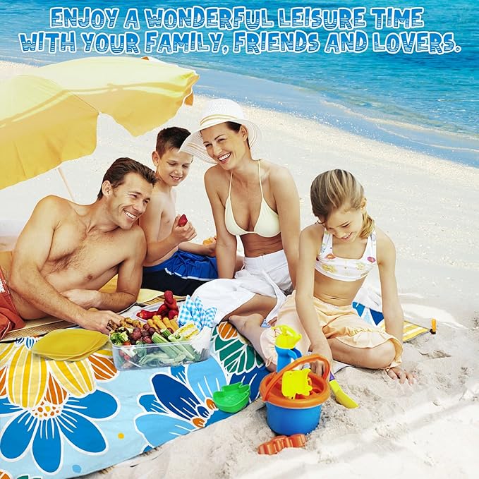 - 🌊BIG BEACH BLANKET:Durable and fast drying,can also be used as a canopy,sunshade,tent,toddler crawling mat,picnic mat,first aid mat,better professional fabric sewing without irritating the skin,providing you a good sense of use.